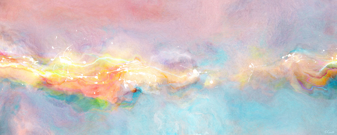 There is great enjoyment in the process of creation as it often goes down its own meandering path making each piece unique unto itself. These unique mixed media artworks are created by combining a variety of traditional and digital mediums together to form one image. Experimental layering can include hand drawn artwork, acrylic paintings, algorithmic fractal generated images, and digitally altered photographs. I also create the final image in a very large format so that I am capable of producing oversized vibrant art prints that when hung on your walls will transform your living space with positive energy and contemporary appeal."